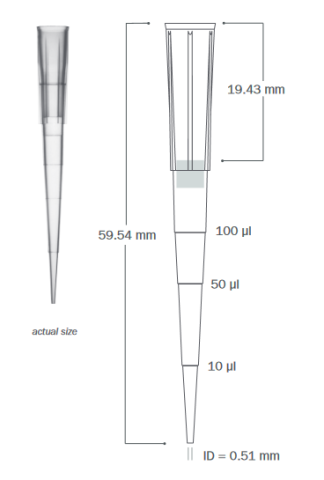 | Skalenstriche | bei 10μl, 50μl, 100μl |