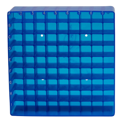 Tube Lagerbox hergestellt aus langlebigem Polypropylen. Passt in bestehende Standard-Lagermodule und bietet Platz für 81 x 1,5 ml bis 2,0 ml Mikrozentrifugenröhrchen und Standard-Kryovials.