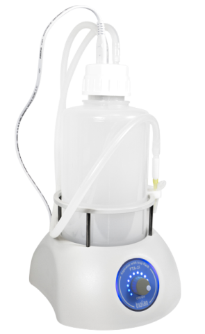 Der FTA-2i ist mit einem Füllstandsensor ausgestattet, der überschüssige Flüssigkeit erkennt. Die Pumpe schaltet dann automatisch ab (begleitet von einem akustischen Alarm) und so verhindert das Überlaufen. In der Basisausstattung wird der Aspirator mit einem Steuerknopf zur Regulierung des Vakuums geliefert. Dieser ermöglicht eine reibungslose Auswahl der gewünschten Aspirationsgeschwindigkeit .