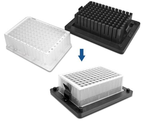 Separate Blöcke zur Unterbringung von verschiedenen Deep-Well-Platten erhältlich.