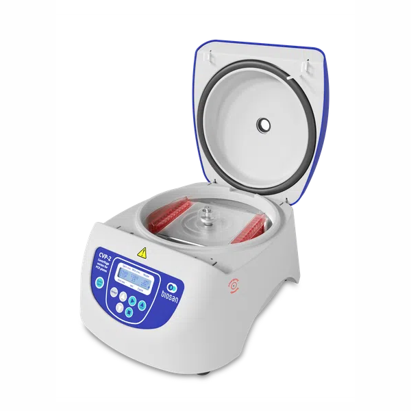 CVP-2 ist eine vollautomatische Zentrifuge zur Reproduktion des SMS-Algorithmus (Spin-Mix-Spin-Technologie) für zwei PCR-Platten gleichzeitig. Das bedeutet für Sie eine deutliche Zeitersparnis.