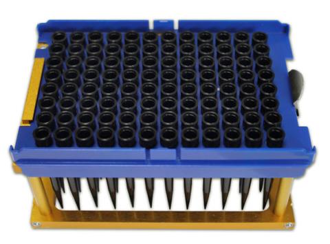 With the conductive robotic tips "blackKnight" – even small volumes can be dosed with high precision and without contamination. The conductivity enables the system to recognize the filling height and will guarantee a minimal immersion of the tip into the liquid, in order to assure a save pipetting and dispensing.